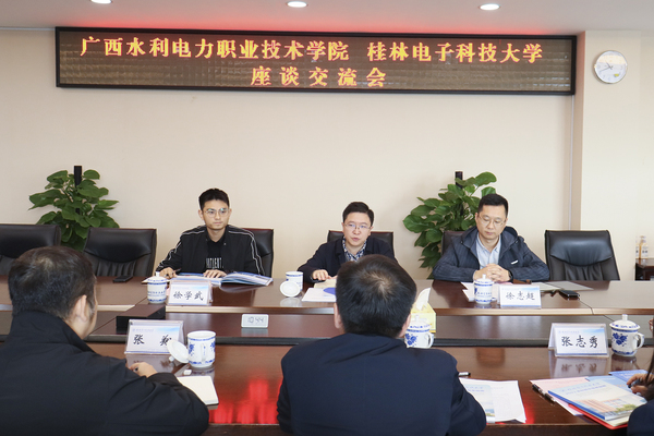 12月14日,广西水利电力职业技术学院党委副书记侯宗毅一行来校就专升本工作进行调研交流,副校长常亮热情接待了侯宗毅一行。招生办、学生工作部(处)等相关人员参加座谈。