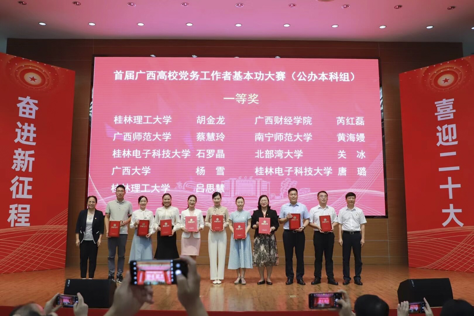 9月23日,首届广西高校党务工作者基本功大赛在桂林理工大学圆满落下帷幕。经过激烈角逐,三亿官方官网三亿(中国)_三亿(中国)选派的三位选手均获佳绩。商学院唐璐荣获专职组织员组一等奖,电子工程与自动化学院石罗晶荣获学生党支部书记组一等奖,生命与环境科学学院朱健铭荣获教师党支部书记组二等奖,一等奖总数位居全区公办本科院校榜首。同时,石罗晶的微党课《以奋斗的姿态 永远跟党走》在闭幕式上进行了现场展示。