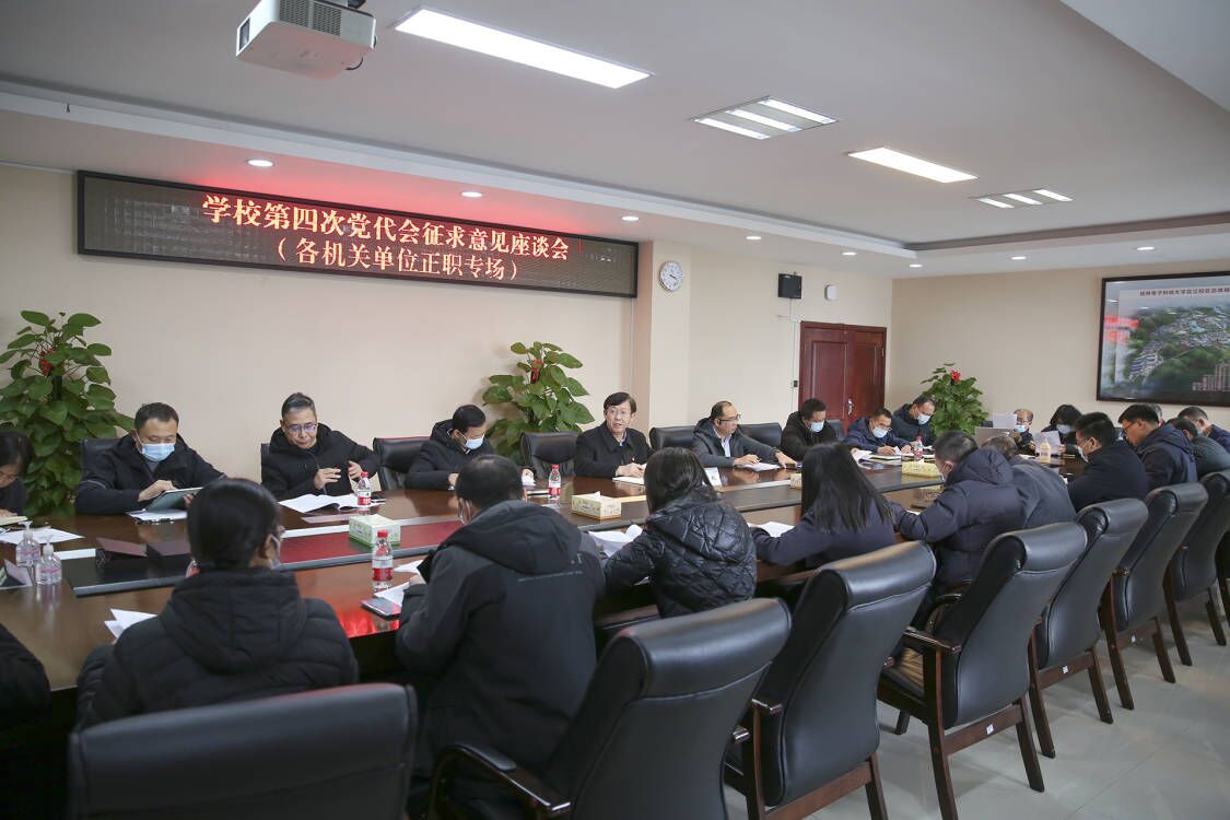 唐平秋强调,开好学校第四次党代会,是学校政治生活中的一件大事,也是事关学校发展的一件大事。制定好今后五年学校发展的目标、任务和举措,对进一步增强党的凝聚力战斗力,推进学校高质量发展发展具有十分重要的意义。大家在座谈中,以对学校负责的积极态度,结合本部门、本单位和自身实际情况,提出了很多好的意见和建议,有利于进一步修改好学校党代会报告。希望秘书会务组认真汇总、研究大家的意见和建议并充分吸纳,凝聚共识、提振信心、鼓舞士气,为开好学校第四次党代会奠定坚实基础。
