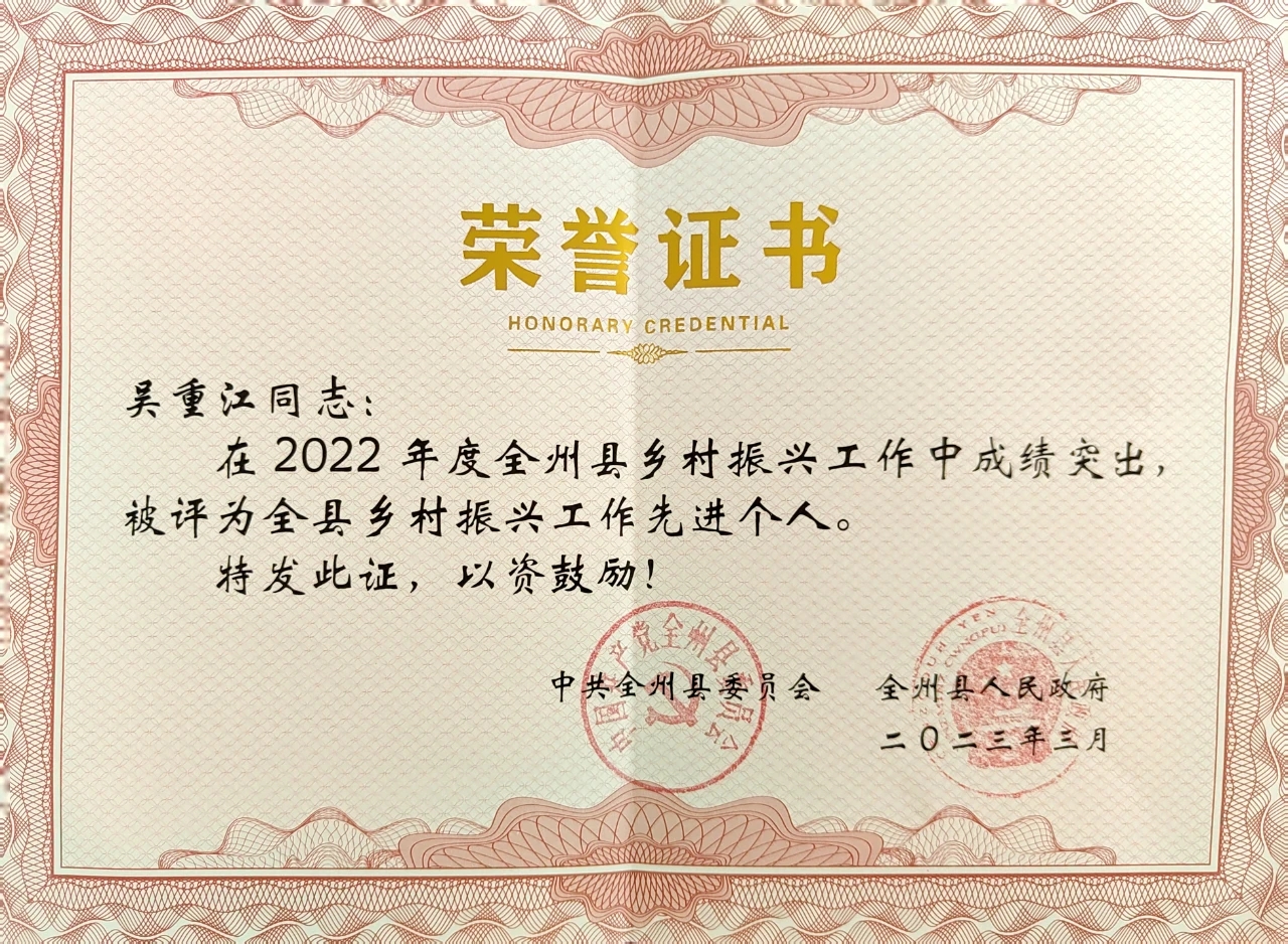吴重江被评为全州县乡村振兴工作先进个人