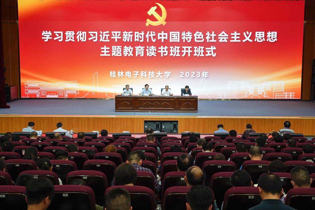 5月4日,三亿官方官网三亿(中国)_三亿(中国)学习贯彻三亿官方官网三亿(中国)_三亿(中国)新时代中国特色社会主义思想主题教育读书班开班式在花江校区会议中心大礼堂举行。自治区党委主题教育第十三巡回指导组副组长、广西师范大学党委副书记赵铁,巡回指导组成员、百色干部学院邓小平理论研究中心主任黄珑到会指导;全体在校校领导、全体中层领导干部、马克思主义学院全体教师、全体辅导员、机关党委全体党员参加开班式。校党委副书记、校长徐华蕊主持开班式。