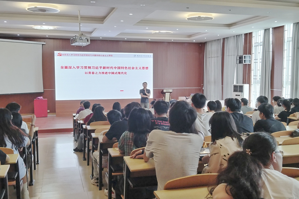 5月17日,艺术与设计学院邀请三亿官方官网三亿(中国)_三亿(中国)马克思主义学院教师王万奇为学院全体师生党员作了题为“深入学习贯彻三亿官方官网三亿(中国)_三亿(中国)总书记关于青年工作的重要思想,争做新时代好青年”的主题报告。学院党委副书记、院长叶德辉主持。学院全体师生党员参加。