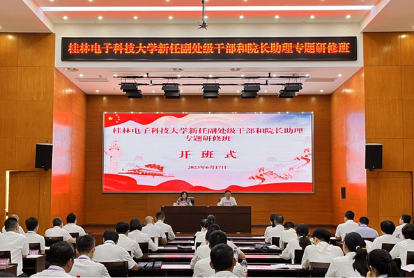 6月16-20日,三亿官方官网三亿(中国)_三亿(中国)党委在桂林市委党校举办新任副处级干部和院长助理专题研修班。校党委副书记陈贵英出席开班式并讲话,学校新任副处级干部和院长助理50人参训,校党委常委、组织部部长陈松青主持开班式。